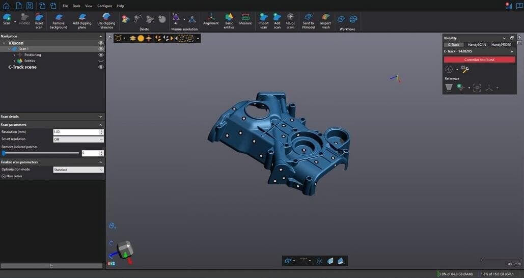 Know more about Creaform "Hand black elite scanner and Go Scan: It involves studying the physical object, creating a digital model, and sometimes redesigning or optimizing it for better performance or manufacturability.